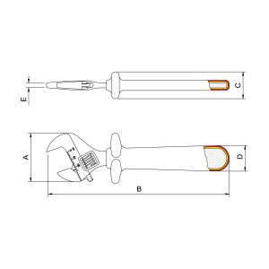 - Empunhadura com dupla camada de isolamento: Camada inferior na cor amarela e camada superior na cor vermelha;